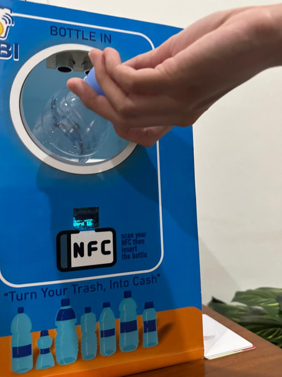 CABI Machine is an automated PET bottle collection machine that provides instant point rewards. It integrates NFC technology for fast authentication and a mobile application for incentive transparency..